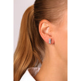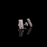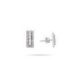 This classic stud earring is in a rectangular shape adorned with brilliant-cut round diamonds. The centre line is accented with bigger size round diamonds and the frame with smaller size round diamonds.
