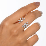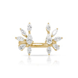 The U Shaped diamond ring designed in a petal design features pear shape diamond and marquise diamonds made in 18k gold.