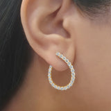 18K diamond arc earrings are delicately designed to accentuate the slope of your ear with a brilliant curve giving a beautiful definition to your face. Available in white, yellow gold, they are stylish and contemporary and crafted with the signature Solitaire Jewels precision.
