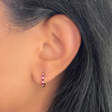 Expertly crafted with sparkling rubies and brilliant diamonds, these round hoop earrings add a touch of elegance to any outfit. The perfect blend of luxury and style, these earrings are a must-have for any jewelry collection. Upgrade your look with these dazzling ruby diamond earrings.