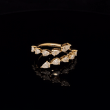 This Symmetry Pear Diamond Ring features a stunning pear-shaped diamond that captures light beautifully, creating a radiant sparkle. Its elegant design highlights the unique shape, making it a timeless piece perfect for special occasions or everyday wear. Crafted to offer both style and comfort, this ring is a meaningful symbol of love and commitment.