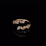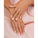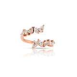 Expertly crafted with a unique design, our crossover ring combines the elegance of marquise diamonds with the natural beauty of a pear-shaped centre stone. Radiating sophistication, this ring is the perfect addition to any jewelry collection. Enjoy the luxury of high-quality diamonds and a stunning design.
