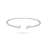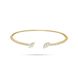 This open spring bangle is made of round and marquise shape diamonds. The delicate bangle has a comfortable fit.