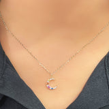 This Rainbow Sapphire Moon Diamond Pendant exudes elegance and sophistication. With a beautifully crafted sapphire and diamond pendant, it is adorned with a rainbow of precious gemstones. Perfect for any occasion, this pendant is a timeless piece that will add a touch of color and sparkle to any outfit.