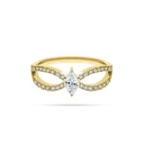 With its beautifully crafted bow design and natural, sparkling diamonds, this ring is a timeless piece that will add elegance and sophistication to any outfit. The marquise and round cuts of the diamonds ensure maximum brilliance and shine, making it the perfect accessory for any occasion.