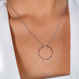 Crafted with elegant simplicity in mind, our Link Diamond Hoop Pendant provide a touch of sophistication to any look. The unique link design adds a modern twist to the classic round shape, while the sparkling diamonds add just the right amount of glamour. Elevate your style with this stunning pendant.
