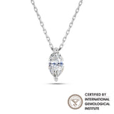 The Marquise Diamond Solitaire Pendant is a must-have for any jewelry collection. Crafted with natural diamonds, the marquise shape adds a unique elegance to any outfit. The solitaire setting allows maximum light to reflect off the diamond, resulting in a brilliant sparkle. Elevate your look with this timeless pendant and certified by IGI for its quality and authenticity. The solitaire setting highlights the diamond's brilliance and sparkle, making it a timeless and sophisticated addition to any jewelry collection. Elevate any outfit with this stunning pendant.