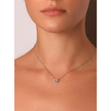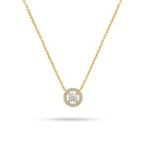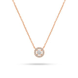 This round diamond pendant necklace is a show stopper piece thanks to its 0.30-carat diamonds carefully crafted into an 18K circular diamond pendant. It's meant to be worn by an equally stunning woman and matched both with elegant tops and casual dresses.