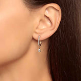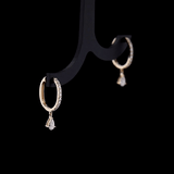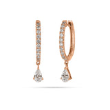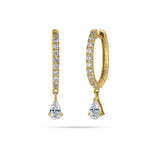 These huggie hoop earrings has a classic design modified with a Pear Diamond hanging which adds sparkle for a fresh look and is a good choice for everyday.