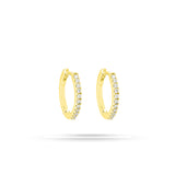 These delicate Fine Hoop Earrings are crafted in brilliant-cut round diamonds. Wear alone as a pair, or single. These diamond earrings can be made in rose gold, yellow gold or white gold.