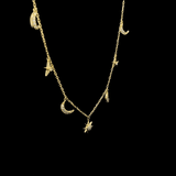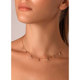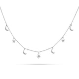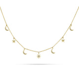 This delicate round diamond choker necklace is a charming gift for any woman. Dainty pendants shaped in stars and crescent moon with glistening diamonds adorn the length of this gold diamond choker. It's expertly handcrafted and made perfectly stylish and feminine to match any look.